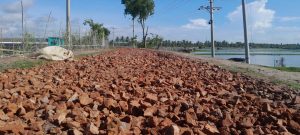 নিম্নমানের উপকরণ দিয়ে পাইকগাছায় চলছে সড়ক নির্মাণে কাজ