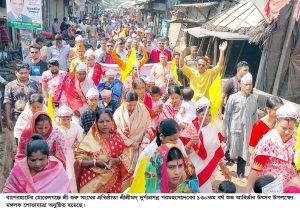 বণার্ঢ্য র্যালীটিতে অংশ নেয় শ্রী গুরু সংঘের শত শত নারী পুরুষ পূজারি ভক্তবৃন্দরা। পরে মন্দির প্রাঙ্গনে আলোচনা সভায় বিশেষ অতিথির বক্তৃতা করেন উপজেলা সহকারি কমিশনার (ভূমি) অতীশ সরকার, উপজেলা বিএনপির সভাপতি শহিদুল হক বাবুল। অনুষ্ঠানে স্বাগত বক্তৃতা করেন শ্রীগুরু সংঘ মন্দিরের সভাপতি অসীম কর্মকার। অন্যান্যের মধ্যে আলোচনা করেন থানা ওসি মতলুবর রহমান, উপজেলা বিএনপির সহ-সভাপতি নেতা মতিউর রহমান বাচ্চু, পৌর বিএনপির সাধারণ সম্পাদক আসাদুজ্জামান মিলন, সাংগঠনিক সম্পাদক মো. আব্বাস মুন্সী, বিএনপি নেতা বদিউজ্জমান মহারাজ।