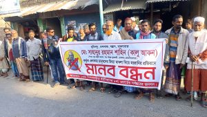 শনিবার বেলা ১১টায় সুন্দরবন সংলগ্ন বান্দারবাজার এলাকায় শাহানুর রহমান শাহিন ওরফে কালুর দায়েরকৃত হয়রানিমূলক মামলা প্রত্যাহারের দাবি জানিয়ে শতাধিক মানুষ এ মানববন্ধনে অংশ নেয়।
