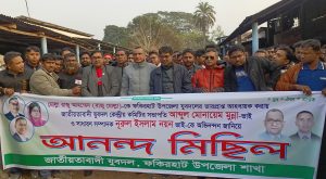 শনিবার (১০ জানুয়ারি) বিকেল ৪টা ৩০ মিনিটে ফকিরহাটের রেণু মার্কেট এলাকা থেকে মিছিলটি শুরু হয়। মিছিলটি ফকিরহাট বাজারের বিভিন্ন গুরুত্বপূর্ণ সড়ক প্রদক্ষিণ করে ডাকবাংলো মোড়ে এসে সংক্ষিপ্ত সমাবেশের মাধ্যমে শেষ হয়।