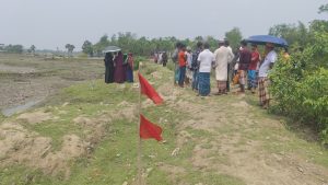 মোরেলগঞ্জ প্রতিনিধি: বাগেরহাটের মোরেলগঞ্জ অভেধভাবে জমি দখল করে ঘের ব্যবসা ও জমির মালিকদেরকে হয়রাণীর প্রতিবাদে উপজেলা বিএনপির এক নেতার বিরুদ্ধে বিক্ষোভ ও মানববন্ধন করেছেন ভূক্তভোগী জমির মালিকেরা। রবিবার (৫ এপ্রিল) বেলা ১২টার দিকে বহরবুনিয়া গ্রামের হাওলাদার পাড়া এলাকায় ১৭০ বিঘা জমির ঘেরের পাশে এ মানববন্ধন কর্মসূচি পালন করা হয়। ঘেরটির দখলে নিতে জমির মালিকেরা লাল পতাকা পুতে জমিতে তাদের দখল ও অবস্থান প্রকাশ করেছেন। এ ঘটনায় এখন দু’পক্ষের মধ্যে উত্তেজনা বিরাজ করছে।